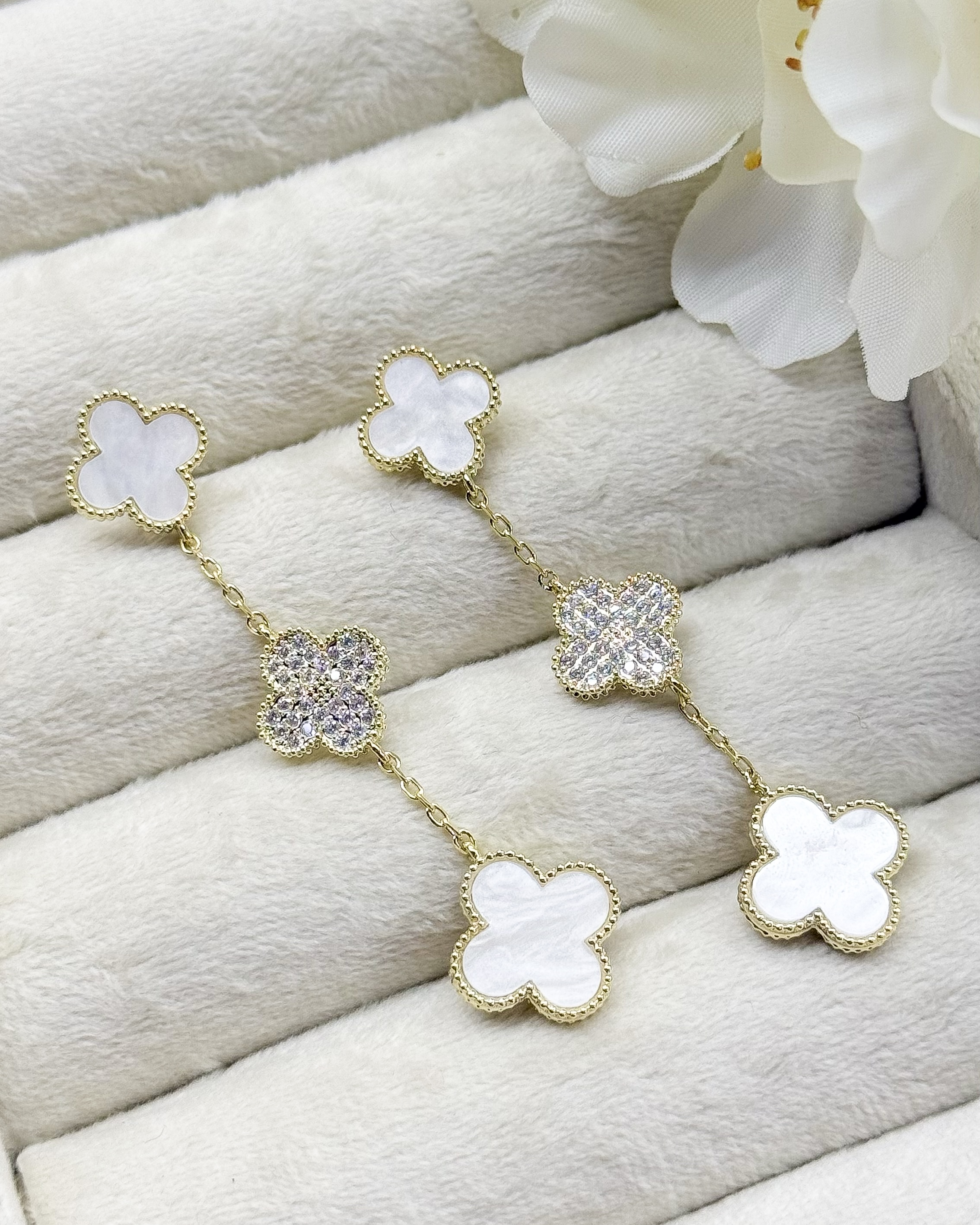 گوشواره زنانه ونکلیف آویز نگیندار فوق العاده جذاب و شیک رنگ سفید