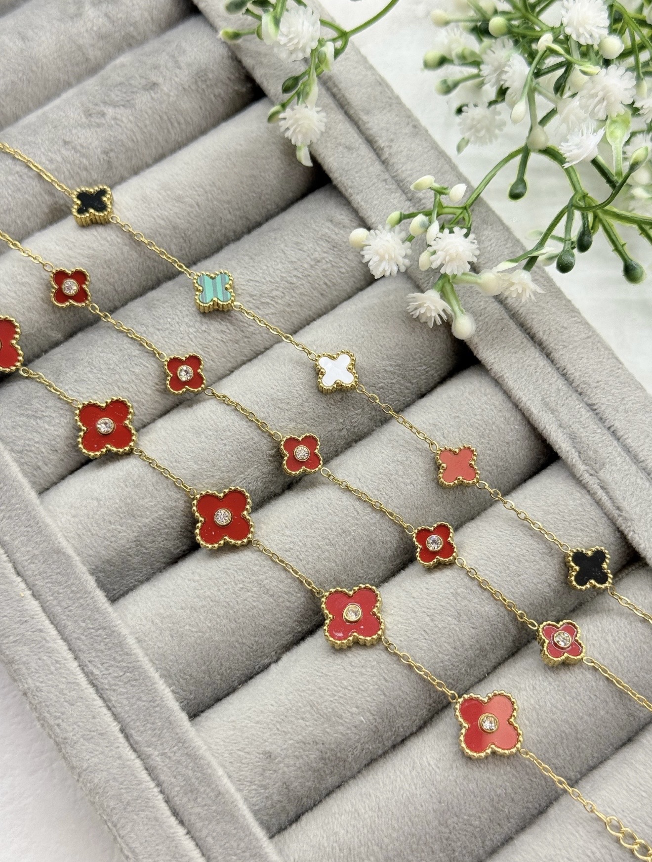 دستبند کشی قرمز فول نگین جواهرشرابی کد XU2000 هدیه خاص