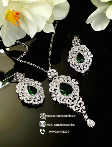ناموجودنیم ست زنانه سلطنتی فوق العاده ظریف زمردی کد XU2435 سایزکوچک