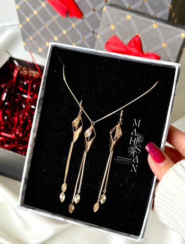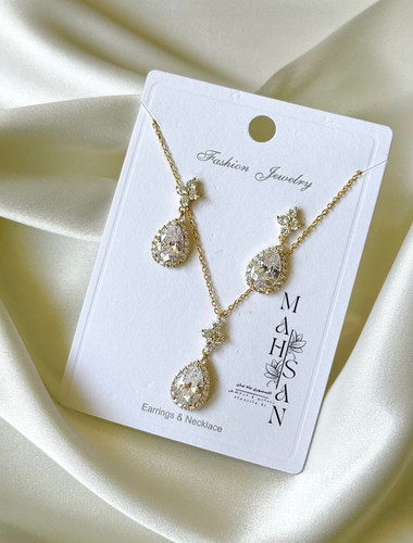 نیم ست جذاب طرح اشک کریستالی براق رنگ گلد تخفیف استثنایی جشنواره