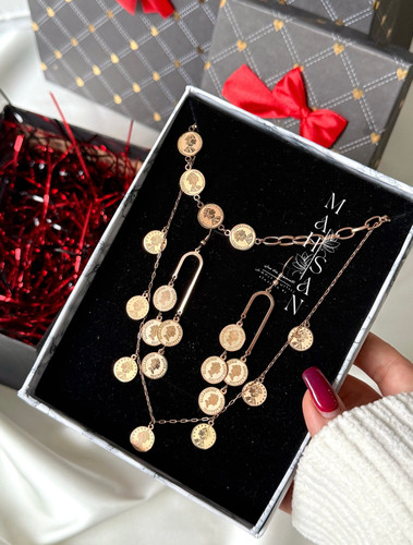 نیم ست ژوپینگ خاص مدل سکه طرح طلا ظریف و زیبا