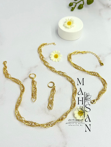 نیم ست زنجیری تراشدار طرح طلا به همراه کارت ضمانت
