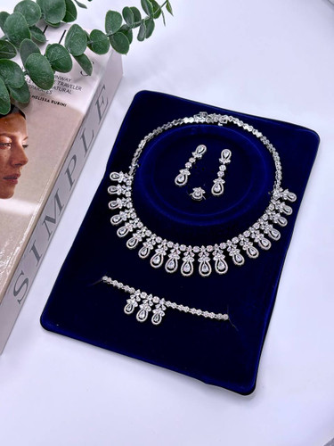 نیم ست کامل عروس مدل ژرویرا مشابه طلا سفید کد XU210 رنگ ثابت