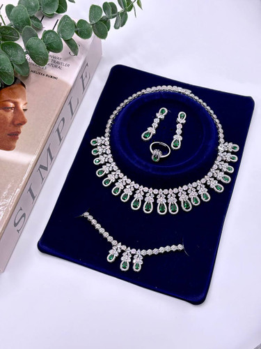 نیم ست زنانه ظریف جواهری سلطنتی زمردی کد XU2397 هدیه خاص