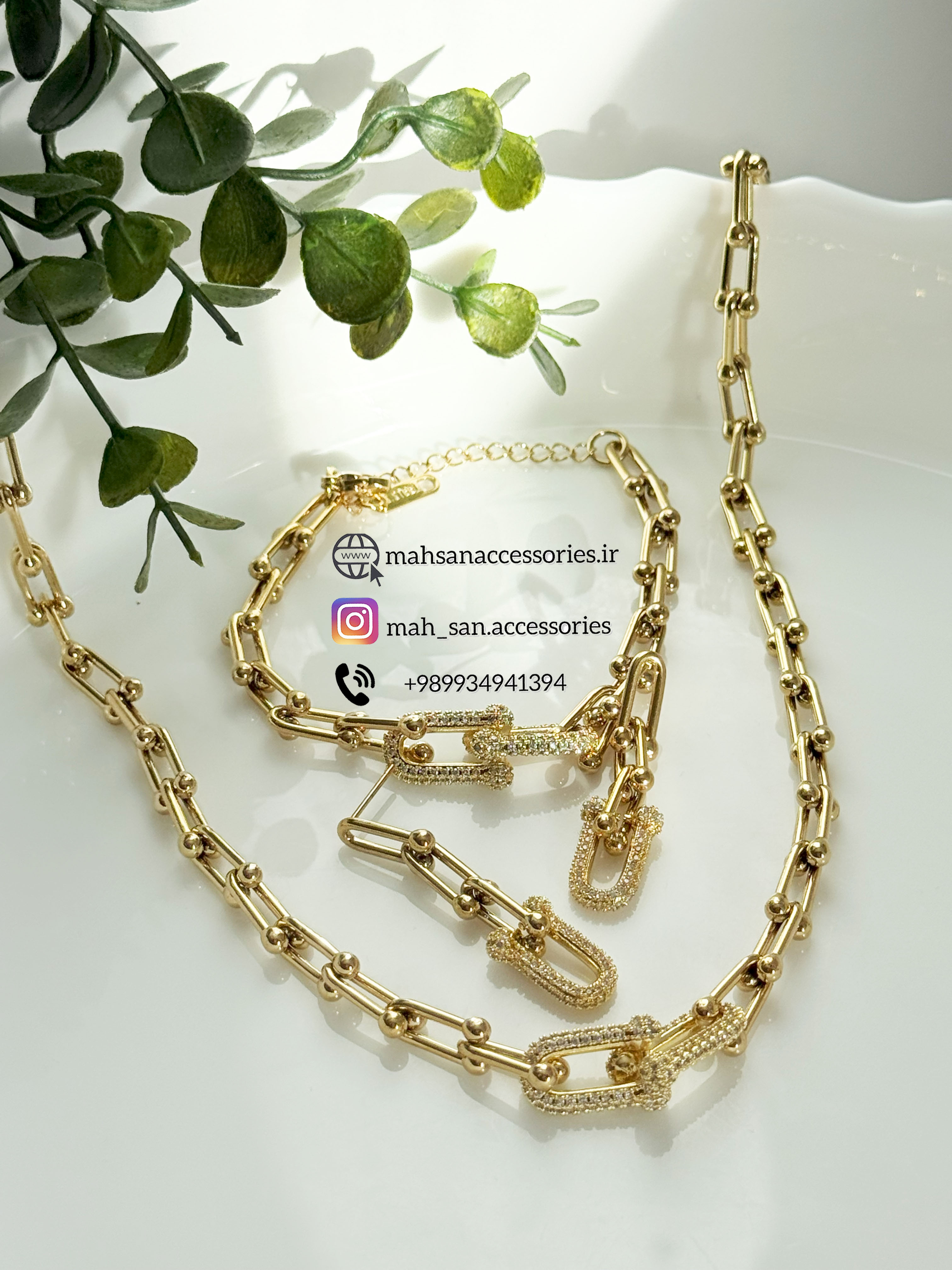 نیم ست زنجیری تراشدار طرح طلا به همراه کارت ضمانت