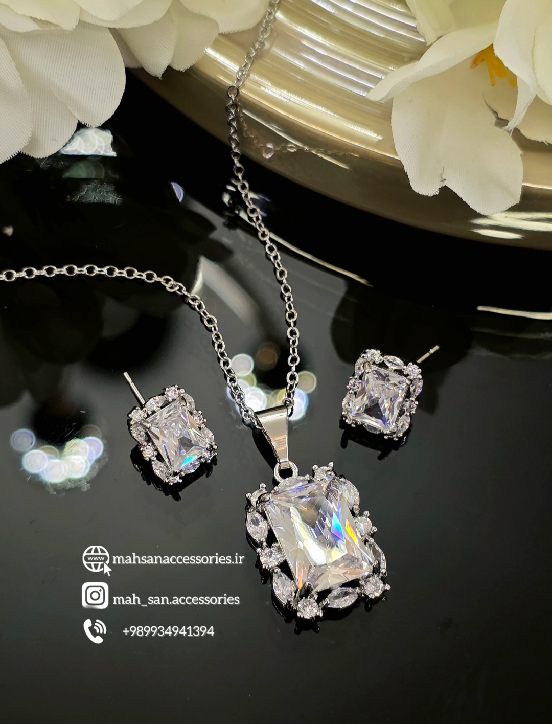 نیم ست ظریف کریستالی جواهری کد XU2392 هدیه خاص