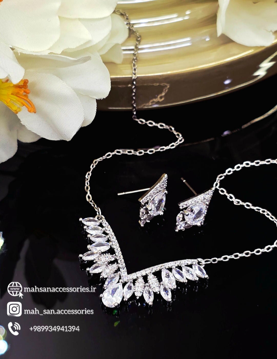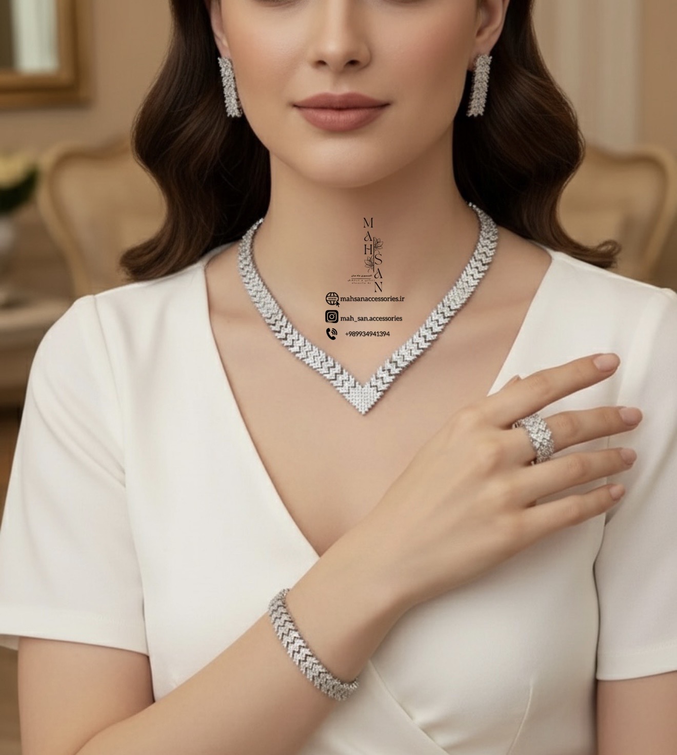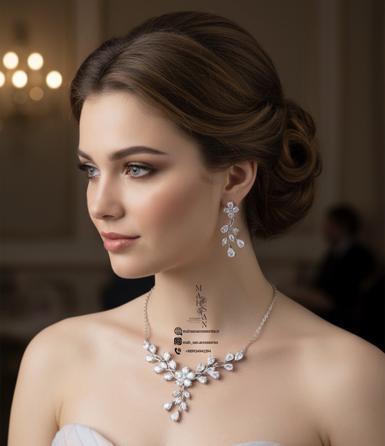 نیم ست کامل عروس مدل ژرویرا مشابه طلا سفید کد XU210 رنگ ثابت