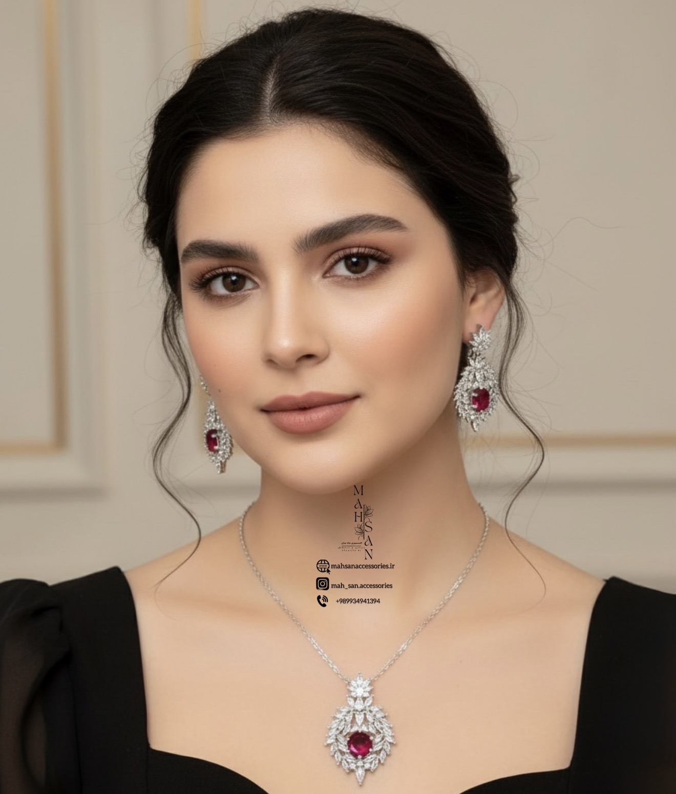 نیم ست زنانه سلطنتی ظریف یاقوت سرخ XU203 هدیه خاص