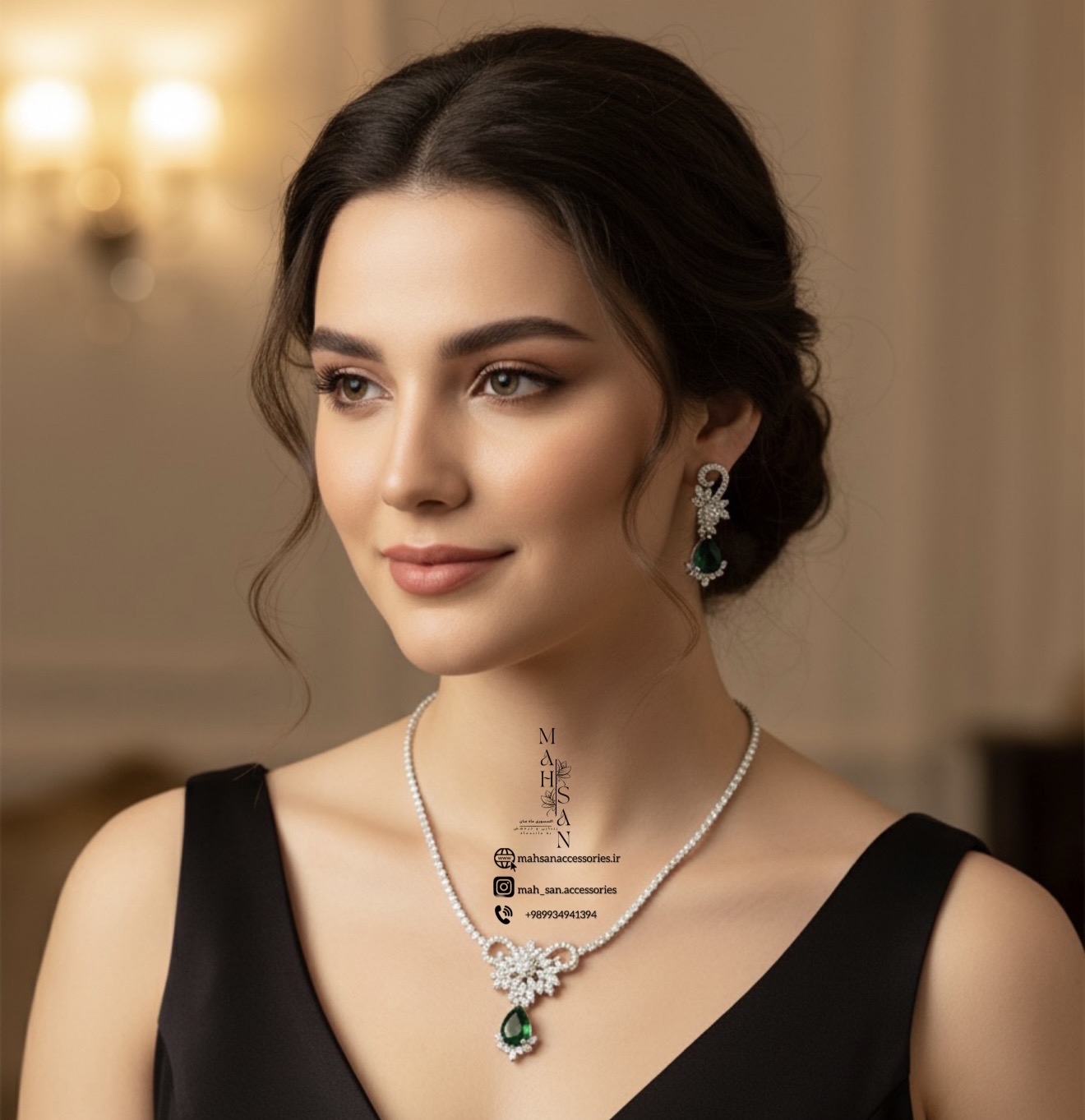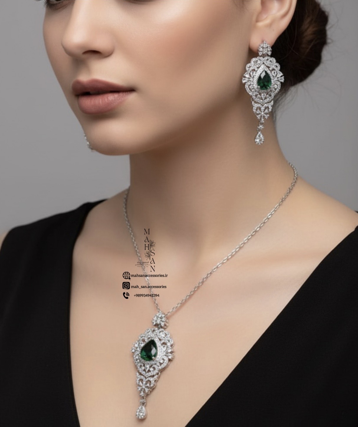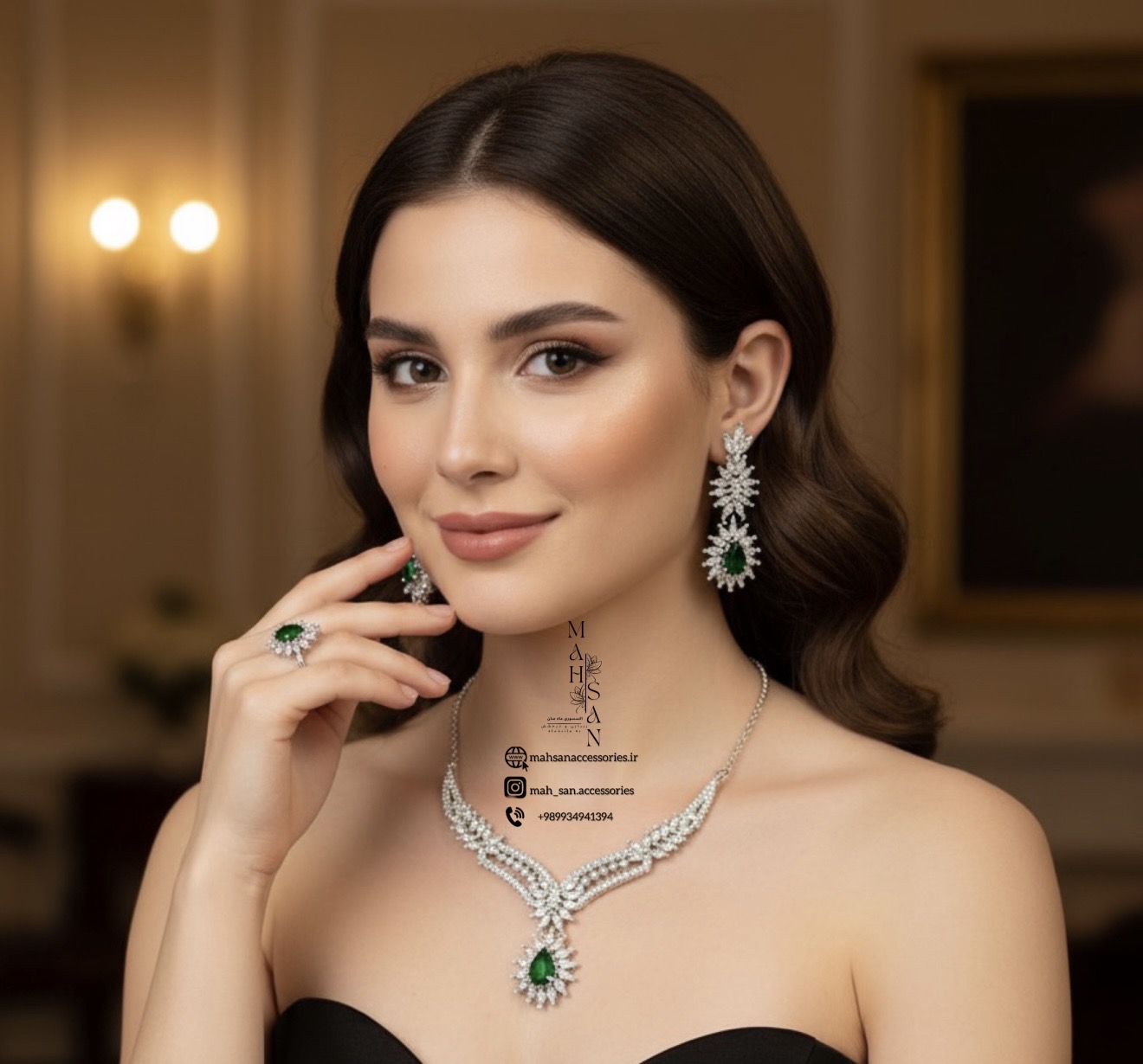 نیم ست زنانه جواهری خورشید زمردی XU2326 هدیه خاص