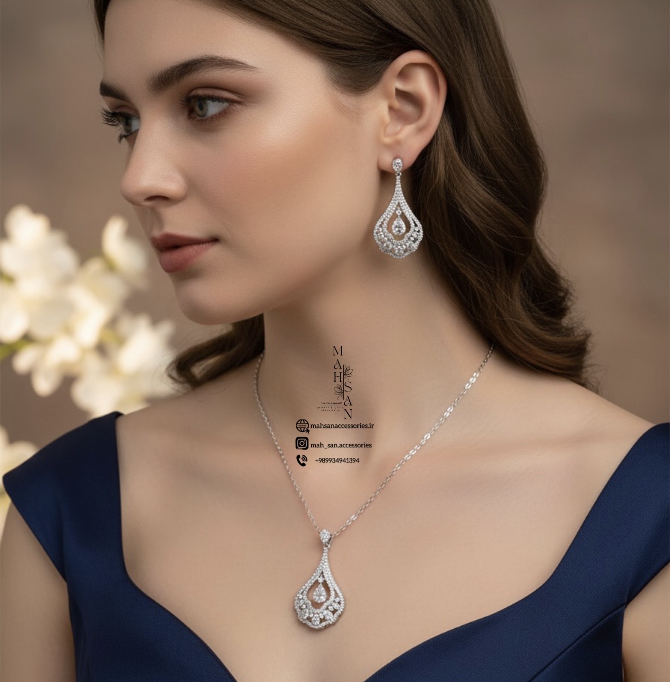 نیم ست جذاب ظریف اشک فرشته سوارسکی فول نگین رنگ ثابت